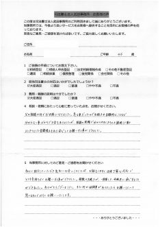 ■相談・依頼にあたって心配に思っていた点を、お聞かせください。父の相続の件でお世話になりました。急な事だったので手続きや金額的なことなど分からない事ばかりで不安もありましたが、相談の段階で分かりやすくきちんと説明して頂き、はっきりとした金額提示もあり安心してお願いする事ができました。